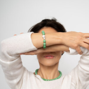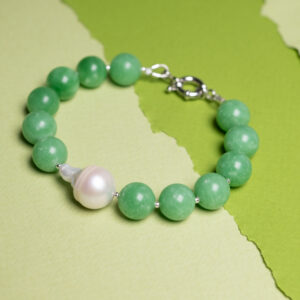 Brățară din argint cu pietre verzi și perlă baroc „Susur Verde”