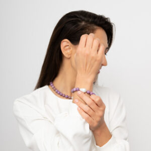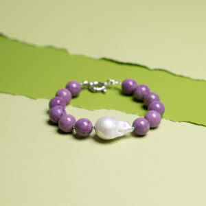 Brățară din argint cu pietre mov și perlă baroc „Ecou Violet”