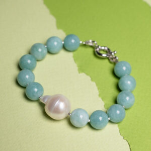 Brățară din argint cu pietre albastru deschis și perlă baroc „Susur Albastru”